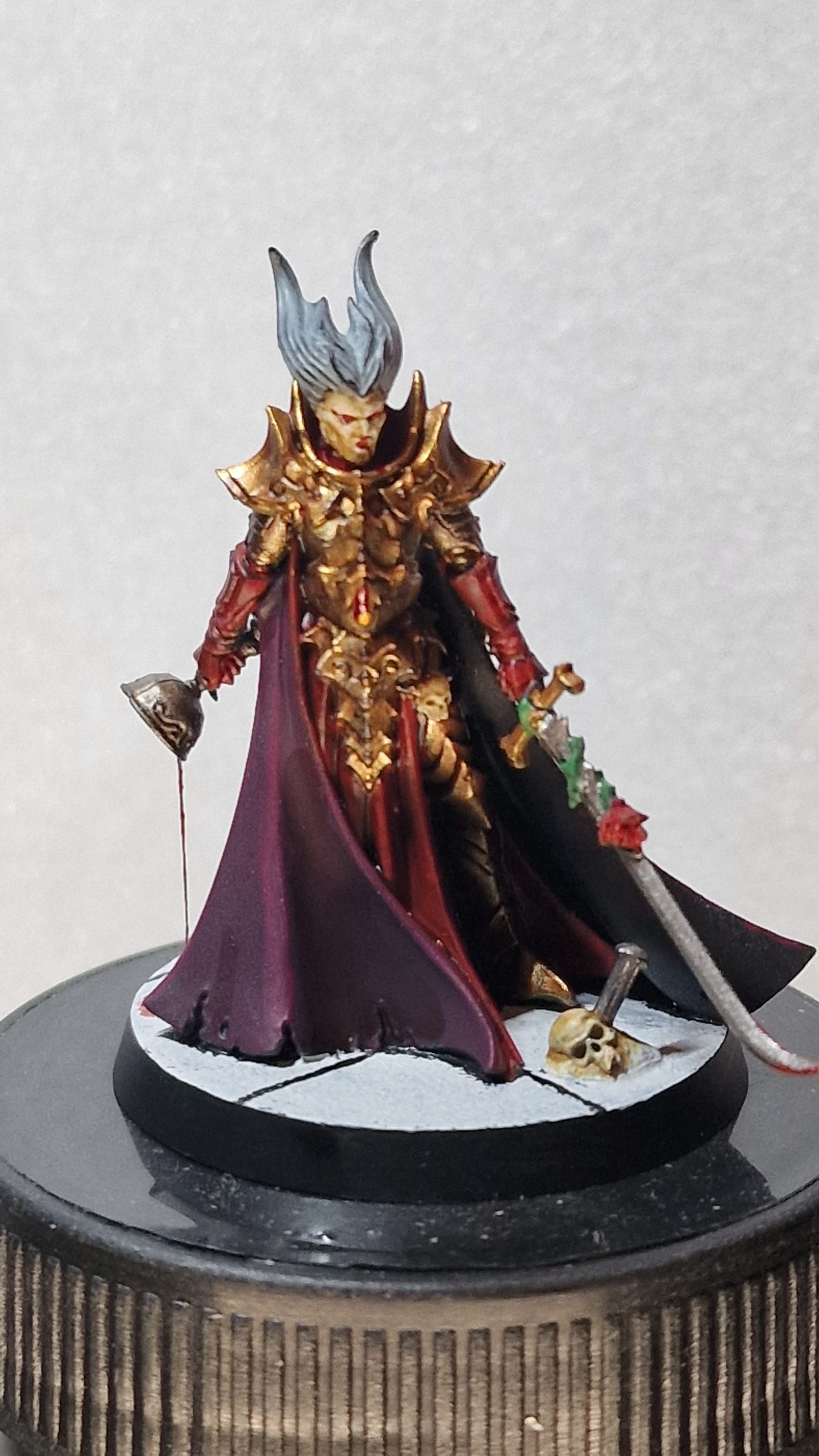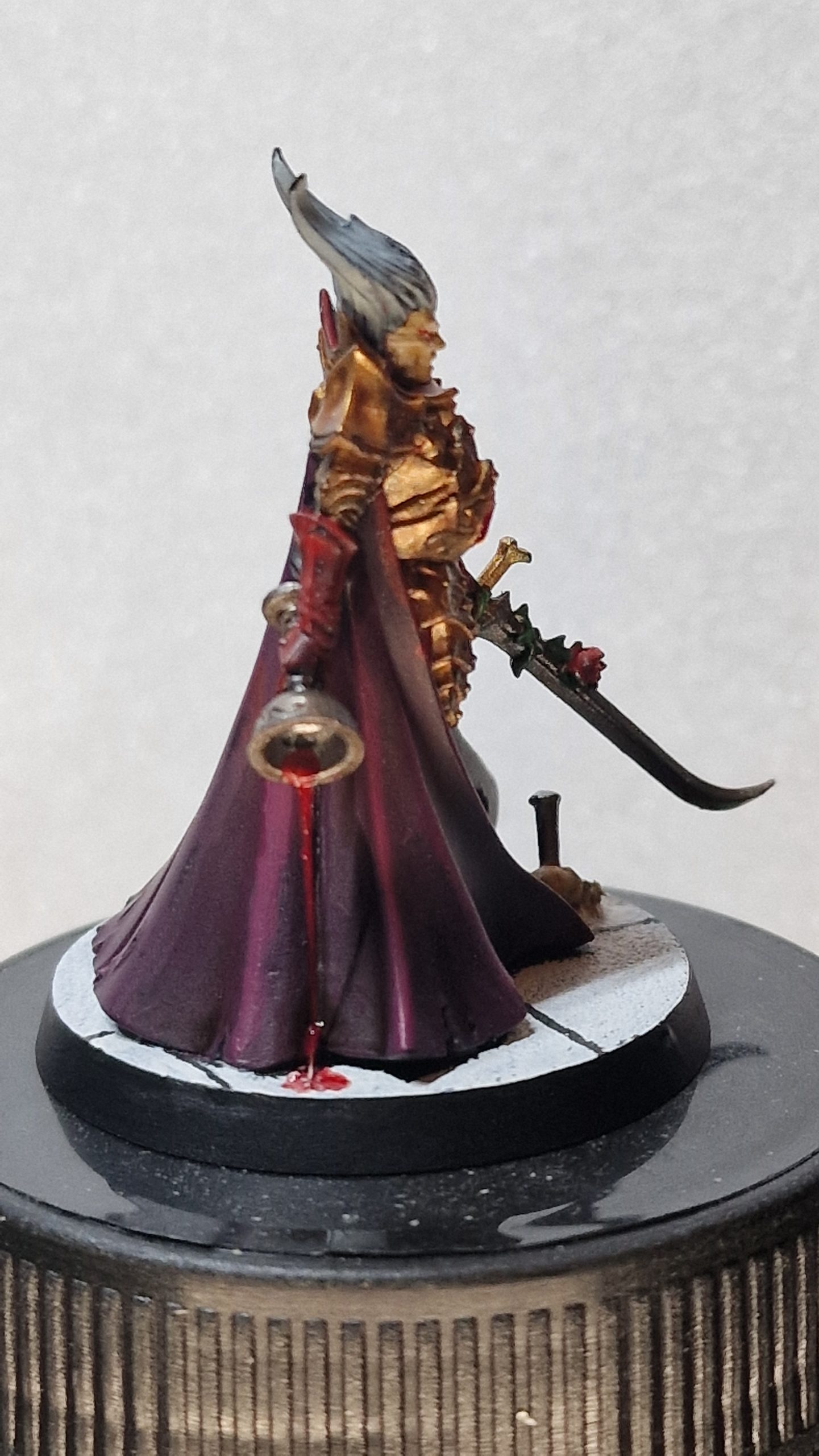 Karlina Von Carstein on ballroom floor Age of Sigmar model. I have added a feature of blood dripping from the goblet onto the floor for extra effect.