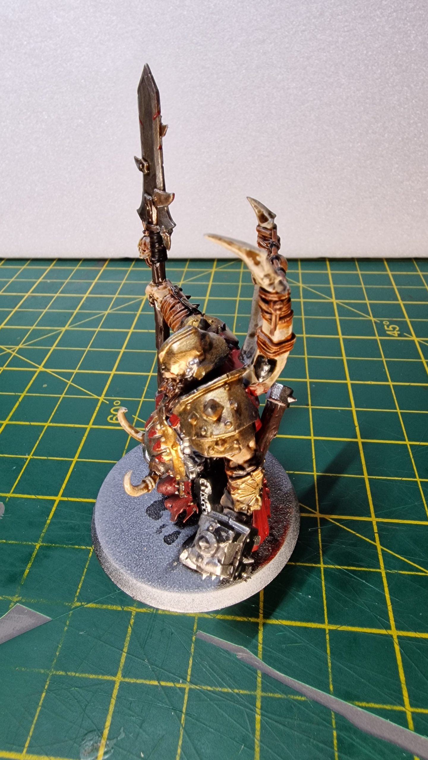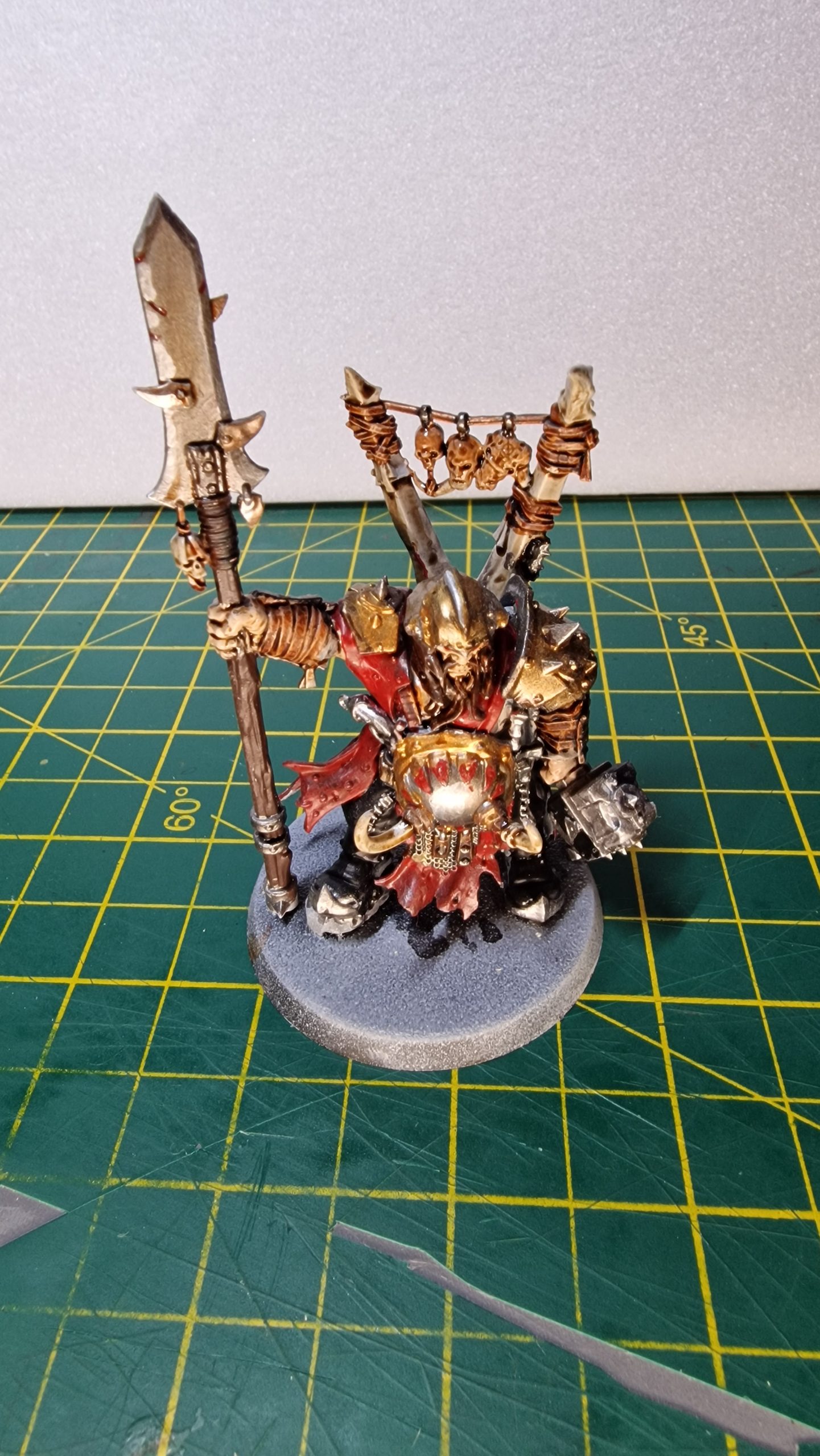 The ferocious war-leaders of the Gutbuster warglutts, Tyrants are living mountains of iron and blubbery flesh. Despite their girth, they move with surprising speed, hacking their prey into bloody chunks for easier consumption.